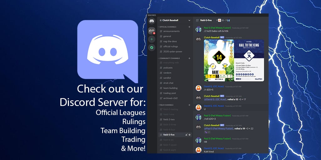 Clutch Baseball is a fantasy board game where you build a 26-man roster, a 50 card strategy deck, choose your coaching staff & select a home stadium with a team building approach. Then you can compete against other players in person or online through our discord leagues.